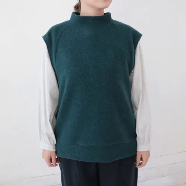商品名:ボトルネック レディース tシャツ ジャガード 5分袖 カットソー ■カラー:ミントグリーン ■サイズ:フリーサイズ フリー:バスト110cm、肩幅55cm、袖丈22cm、身丈前63/後68cm、重さ150g ■素材:綿 100% ■原産国:日本 綿ジャガードで表情のある、ボトルネックのプルオーバー。 オーバーサイズで、ストレスのない着心地の5分袖Tシャツです。