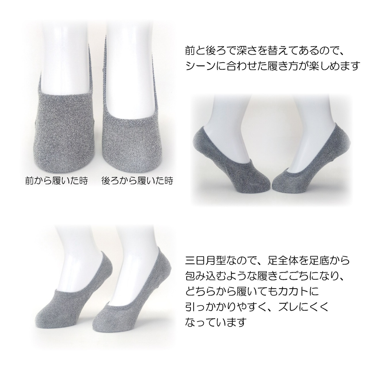 この三日月ソックスなら、その場で後ろ前を反対にすれば解決です!