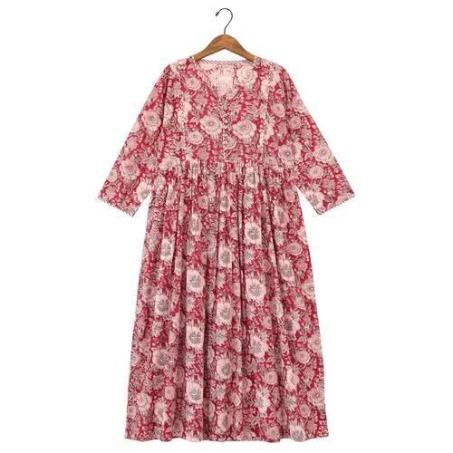 Shanti Shanti 花柄 ワンピース レディース 春 夏 長袖 ロング きれいめ 40代 50代 60代 インド綿 ブロックプリント