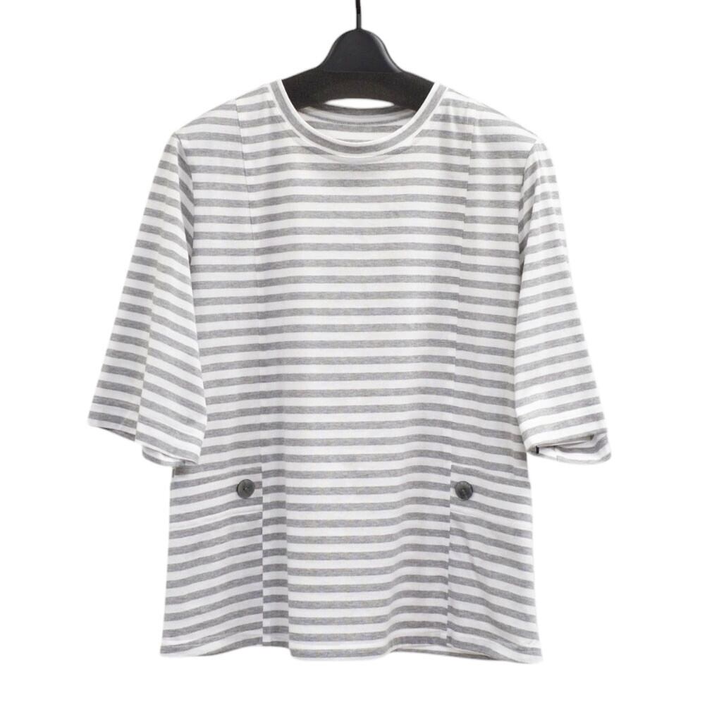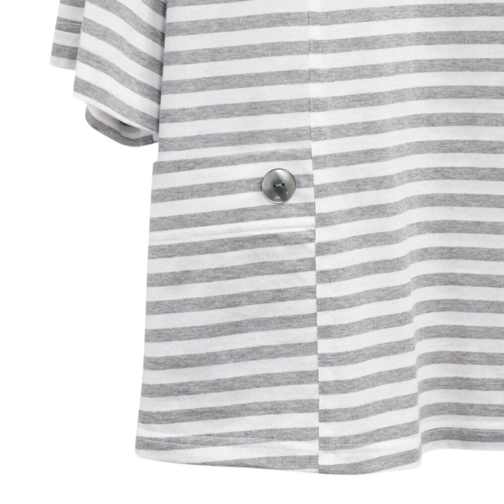 LASA ボーダー tシャツ レディース 半袖 カットソー 50代 60代 ゆったり 綿 春 夏 五分袖 5分袖 トップス 日本製 グレー 送料無料
