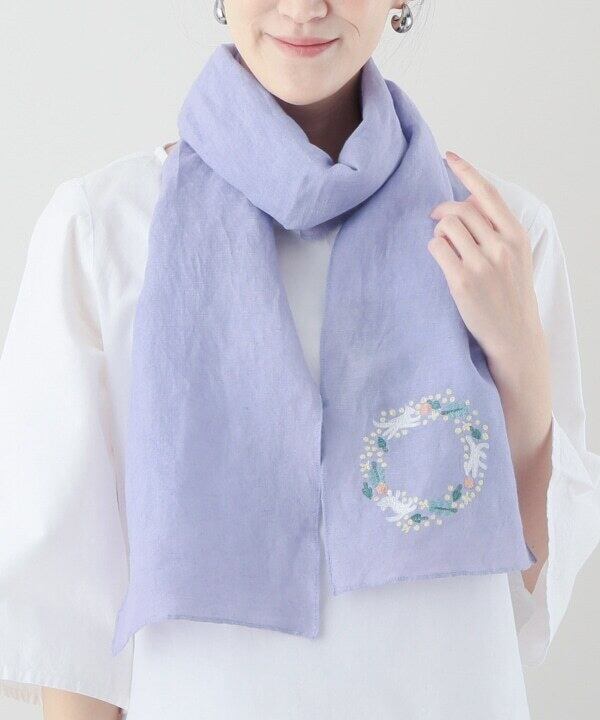 artipur ストール スカーフ ショール 春 夏 薄手 レディース 綿 麻 コットン リネン 刺繍 アニマル柄 ブルー