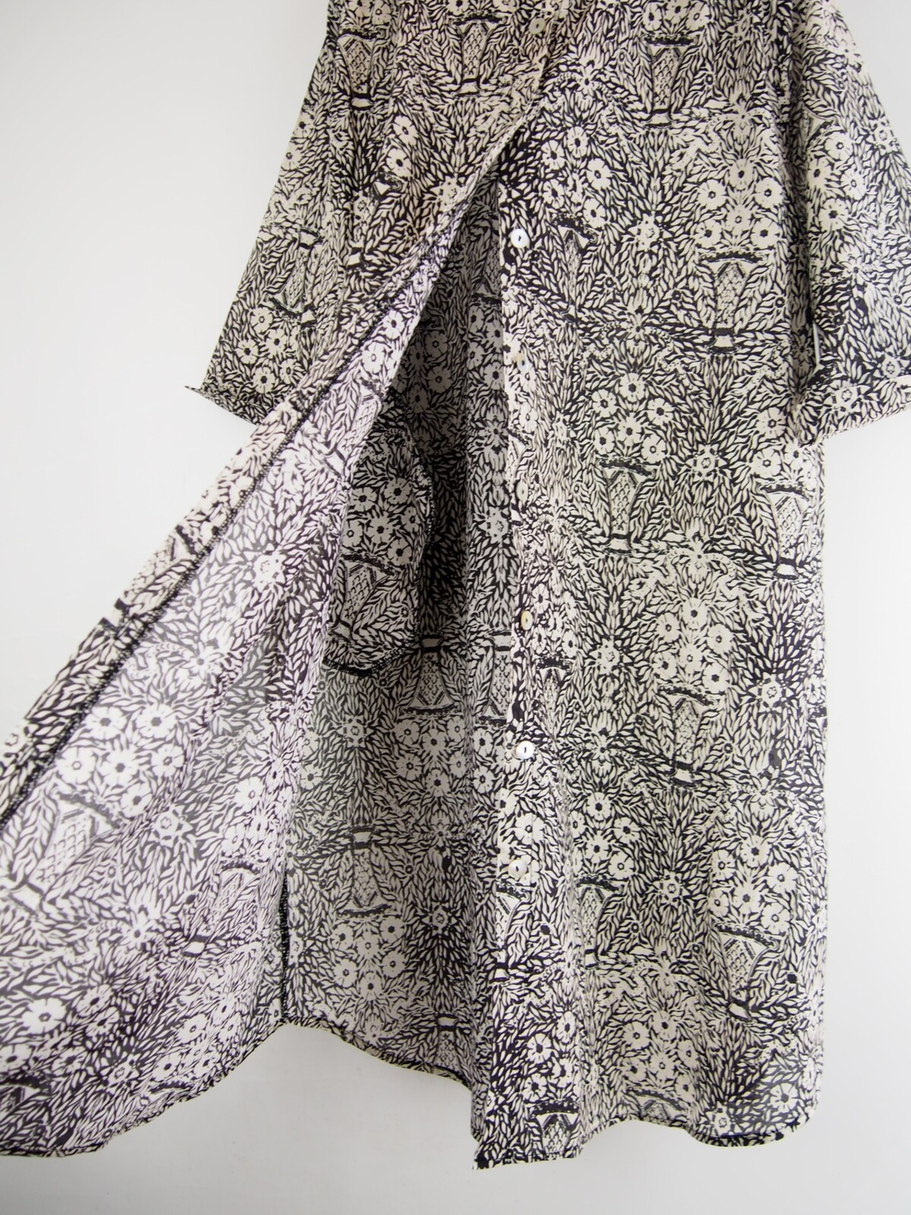 綿100%ローンの細かくてエアリーな、フラワーベースプリントのロングブラウスです。