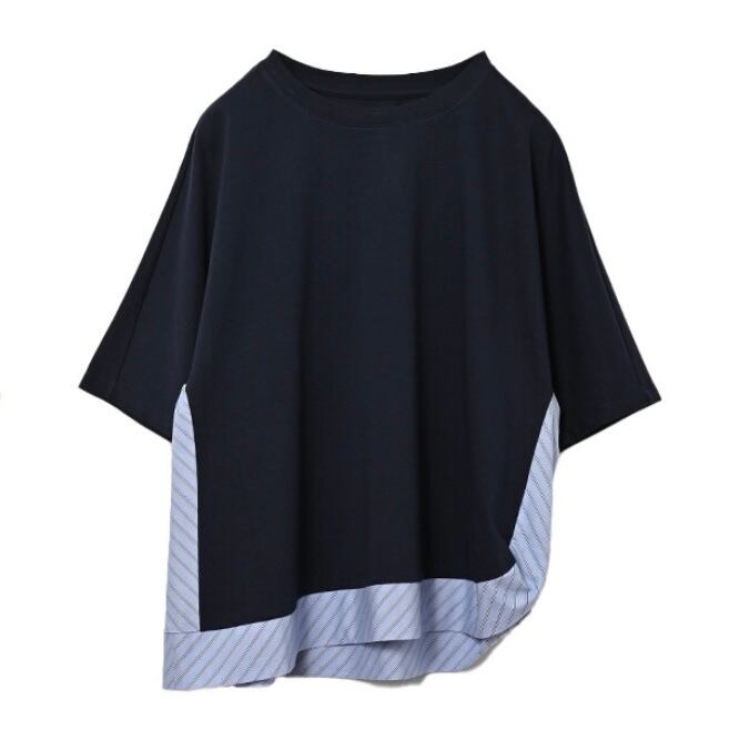 akane アシンメトリー tシャツ レディース カットソー トップス おしゃれ 半袖 夏 きれいめ 50代 40代 ストライプ ネイビー