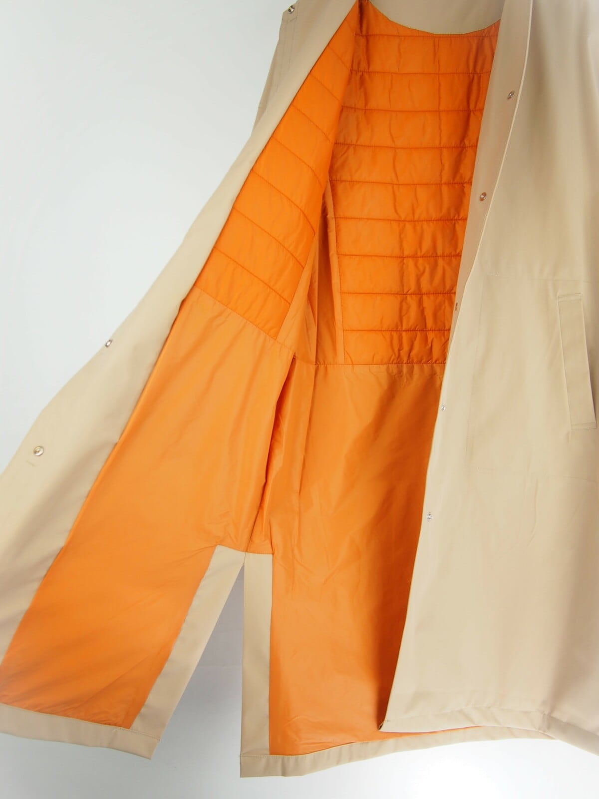 「WIND PROOF + PEファイバー」インナーキルト比翼コート。