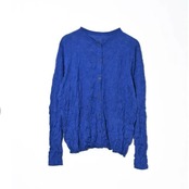 akane カーディガン レディース 長袖 カットソー ニット クルーネック 丸首 シワ加工 ブルー おしゃれ