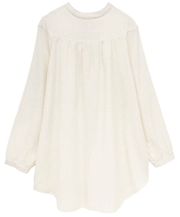 やさしい肌触りのコットンツイル素材を使用した、ホワイトカラーが基調の軽やかで清潔感のあるコットンツイルシリーズのチュニックブラウス。