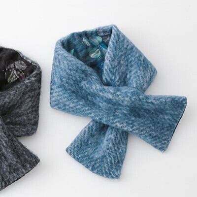 異なる布地を組み合わせた、表情ゆたかなリバーシブルの差し込みマフラー。