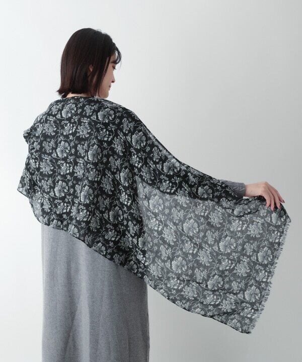 上品なフラワーモチーフを、モノトーンで表現した大人のショール。