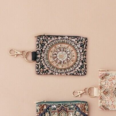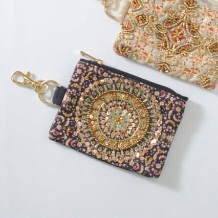 華やかなプリント&ビーズ刺繍キーポーチ。