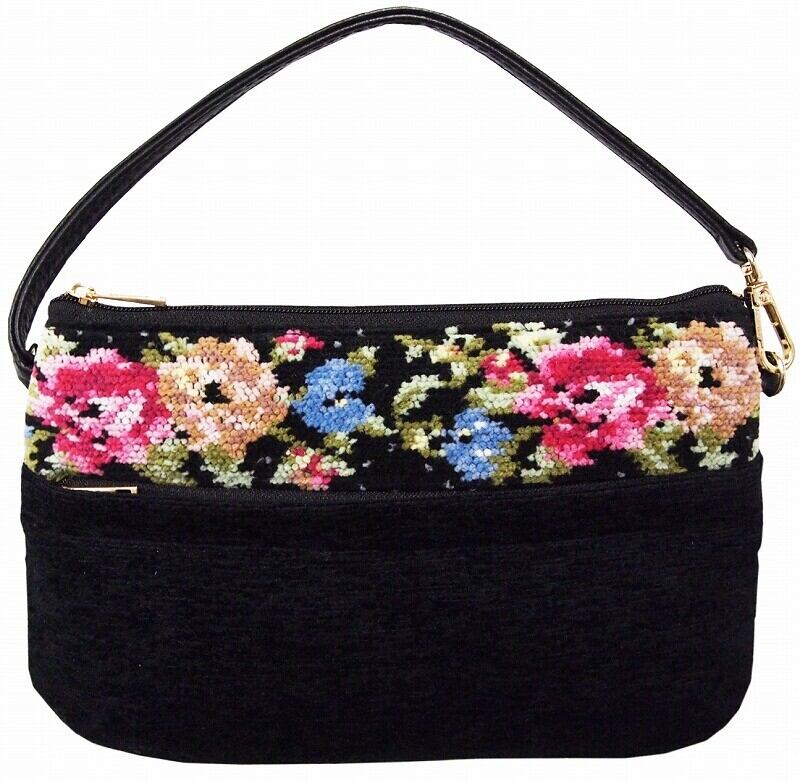 表地部分にシェニール織生地を使用した、使い勝手のよい小さめサイズのハンドバッグです。