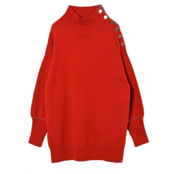 akane ニット セーター レディース ウール 冬 秋 赤 オフィス おしゃれ 60代 50代 肩ボタン トップス 長袖 チュニック プルオーバー きれいめ レッド