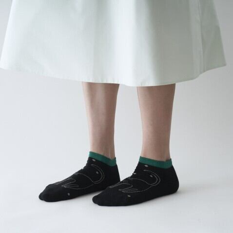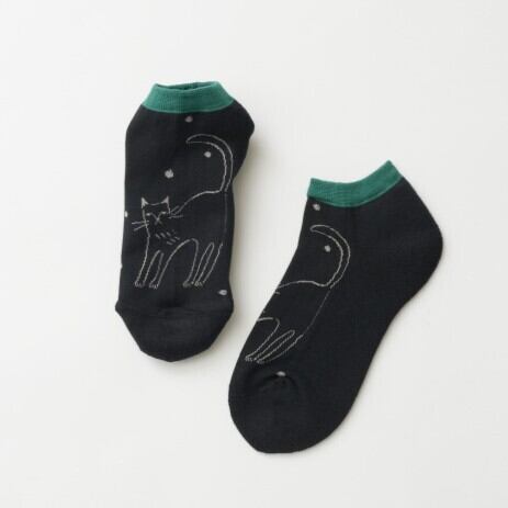 fromF 猫 ショート ソックス 靴下 レディース スニーカー アンクル パイル 黒 おしゃれ 脱げない 暖かい 24cm 綿 ギフト プレゼント 女性 日本製