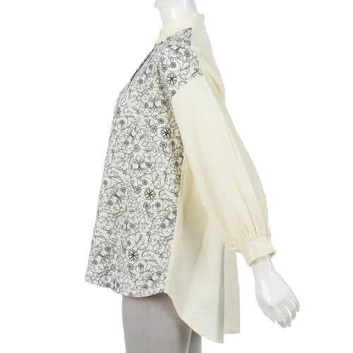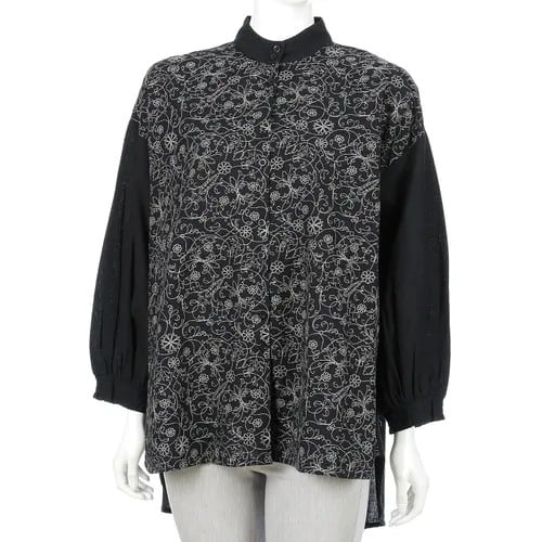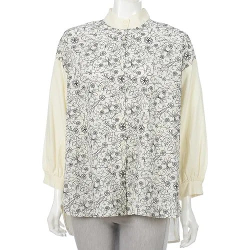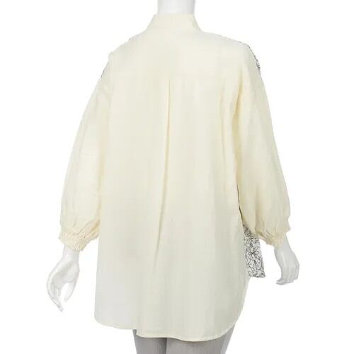 商品名:teMite テミテ レディース バンドカラー 長袖 シャツ ブラウス 刺繍 チュニック