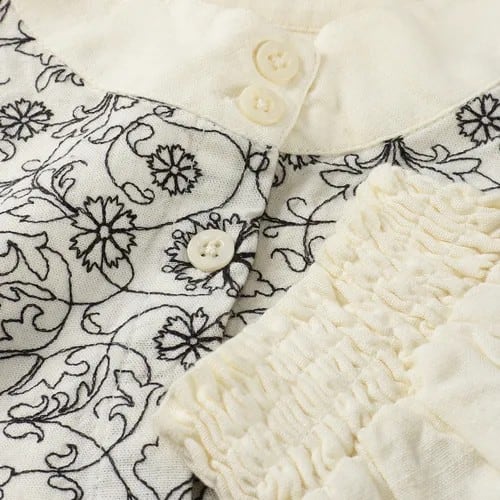 フロントには繊細な刺繍をあしらい、ナチュラルな中にモードな雰囲気をプラス。