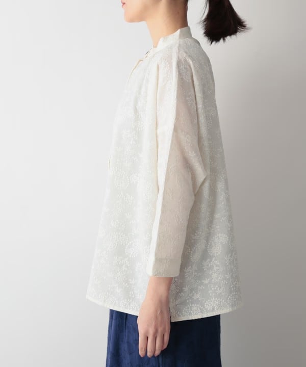 刺繍ブラウスでありながら重たく見えず、ナチュラルコーデにもきれいめスタイルにも合わせやすい万能アイテムです。