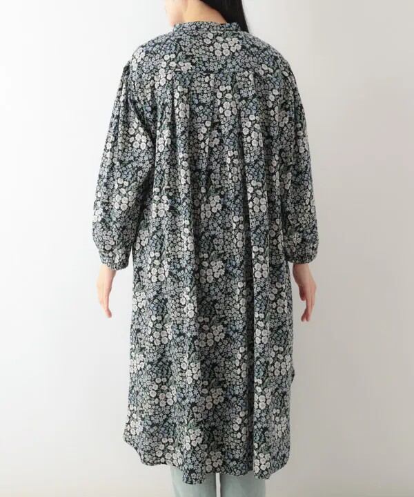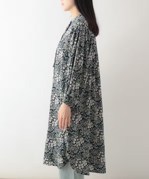 商品名:TANABANA レディース 花柄 シャツ ワンピース 長袖 ノーカラー バンドカラー ロング ブラウス