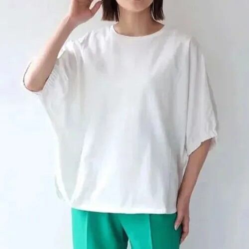 シンプルで着回せるので、色違いで揃えたくなるトップスです。
