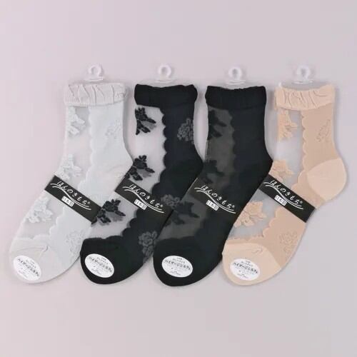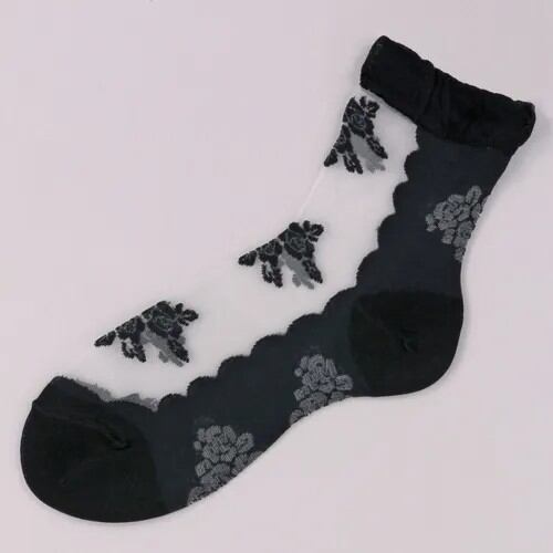 シースルー ソックス 靴下 黒 グレー ベージュ 50代 40代 足 裏 花 柄 おしゃれ 日本 製 レディース シルク 混 夏 春 秋 薔薇 レース