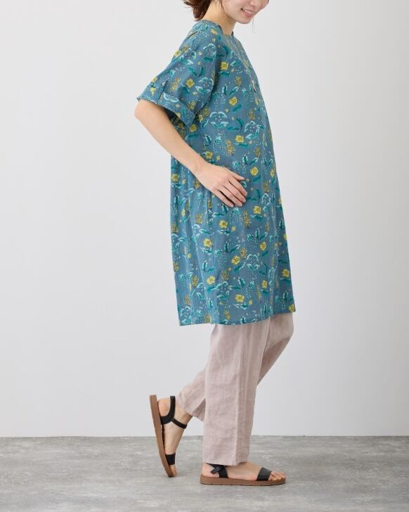 FRIENDSHILL フレンズヒル チュニック ワンピース レディース おしゃれ 春 夏 50代 60代 40代 半袖 5分袖 花柄 アイボリー 綿 コットン