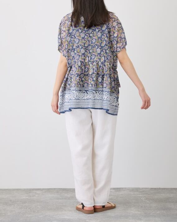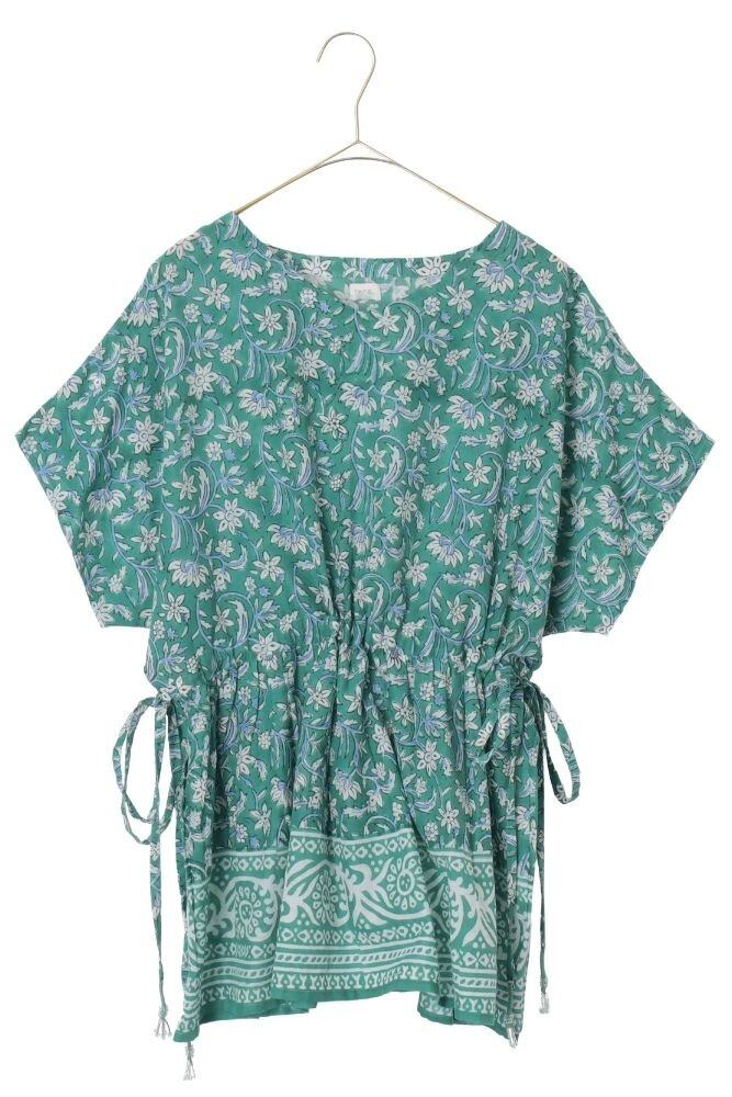 FRIENDSHILL フレンズヒル チュニック ブラウス レディース おしゃれ 春 夏 50代 60代 40代 半袖 5分袖 綿 コットン 花柄 グリーン フレンチスリーブ