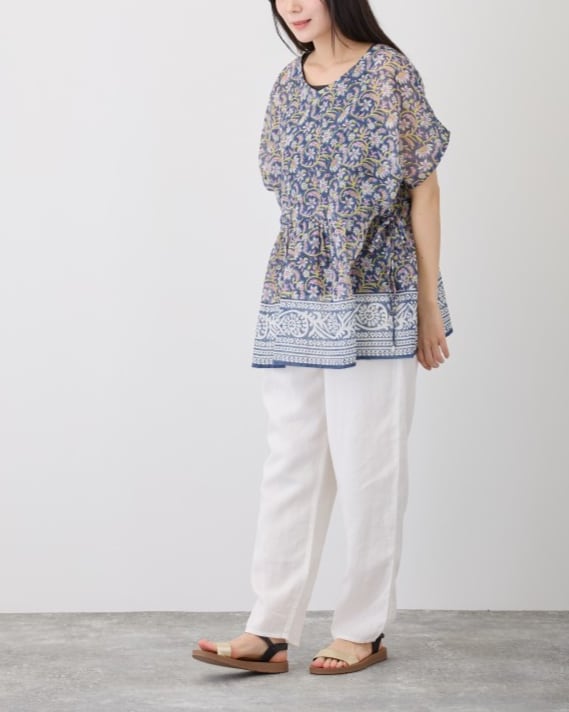 商品名:FRIENDSHILL フレンズヒル レディース フレンチスリーブ 花柄 チュニック ブラウス