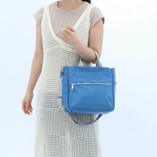 ナイロンのような光沢感や軽やかさ滑らかな手触りと、PUの水を弾きやすく折りシワが付きにくく、サッと拭けてお手入れがラクなところの良さをいいとこどりしたバッグです。