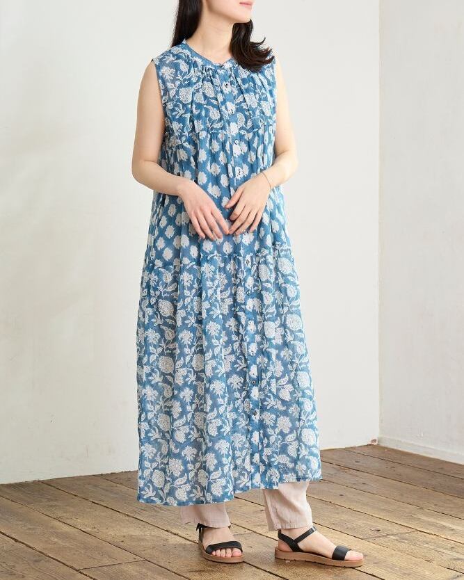 FRIENDSHILL ティアード ワンピース ノースリーブ 50代 40代 アラフィフ ワンピ レディース 春 夏 きれいめ ロング 綿 コットン ネイビー ブルー