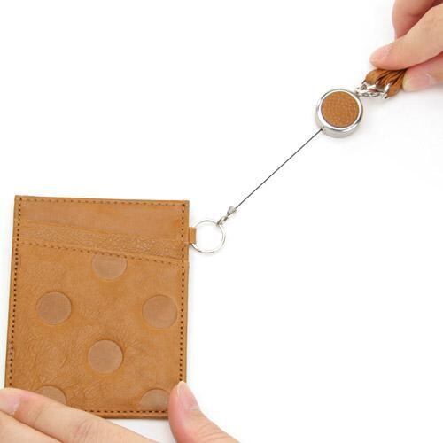 ドットの型押しがかわいいシリーズの、リール付きパスケース。