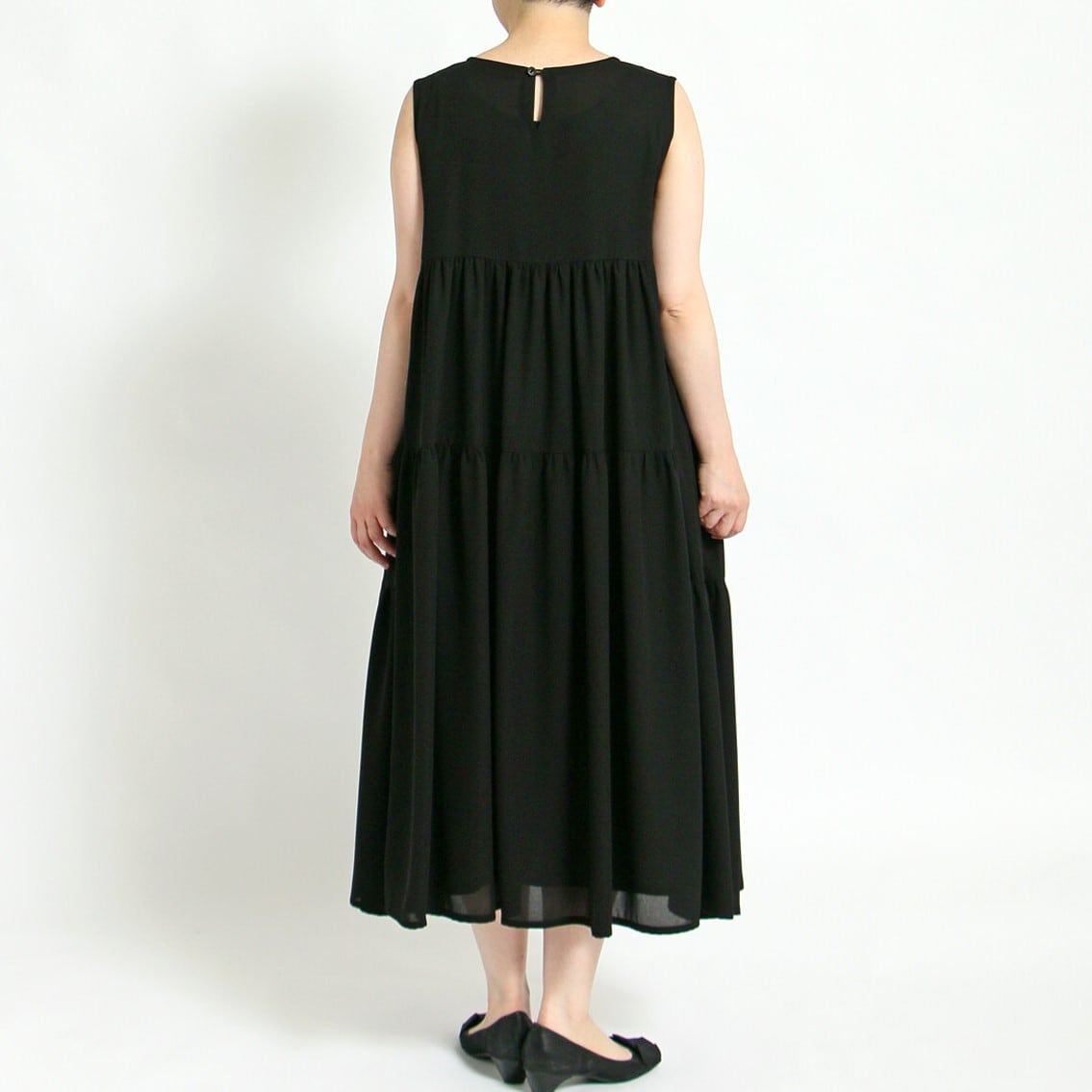jalan jalan ジャランジャラン ワンピース レディース 40代 50代 60代 ジョーゼット ブラック 黒 ノースリーブ ティアード 切替え ペチコート付き 無地 送料無料 sale
