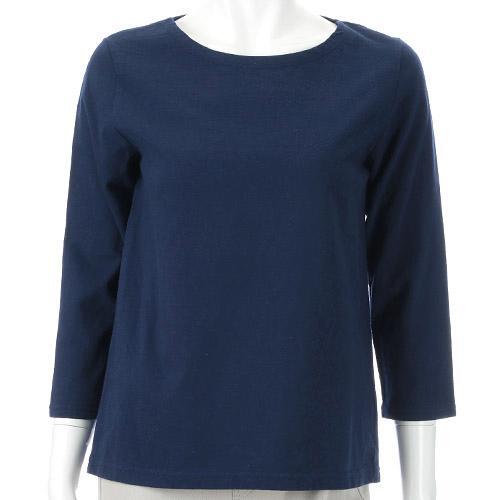 程よい襟開きのボートネック、着まわしのきく七分袖で長いシーズン活躍する1着です。