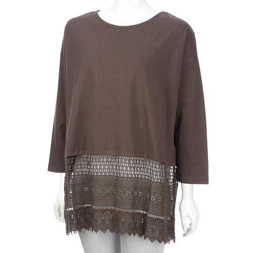 伸縮性の有る着心地の良い生地にレースの切り替えが上品で可愛らしく、普段使用にも活躍する使いやすいブラウスです。