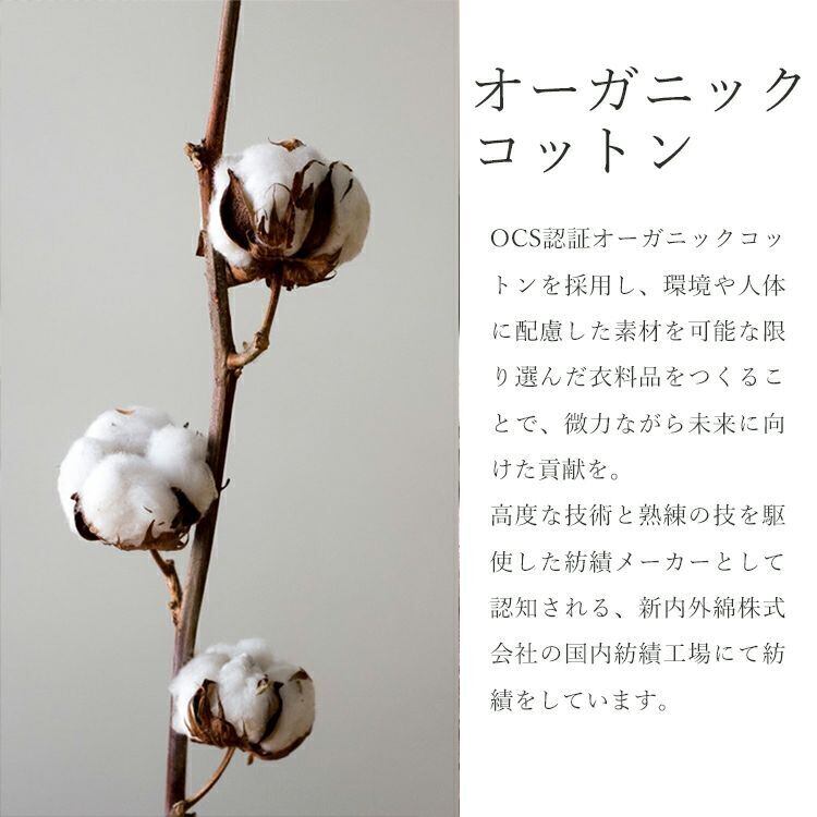 コットン100%で伸縮性が良く、快適なストレッチ性を追求した、からだをふんわり包み込むようなやさしい風合いのリブ素材を使用。