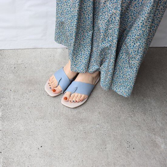 シンプルながらも曲線的なレザーコードと、スクエアトゥがモダンな雰囲気のサンダル。