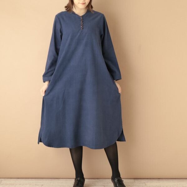 TANABANA ワンピース レディース コーデュロイワンピース コーデュロイ 長袖ワンピース 50代 40代 30代 長袖 春 秋 冬 ネイビー ブルー コーディロイワンピース ロングワンピース | glistening