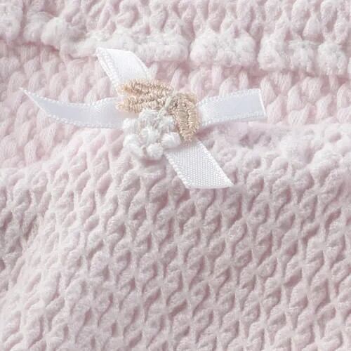 肌にあたる部分は綿素材、オリジナルの鹿の子編みでふんわりやわらか。