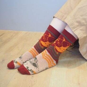 ムーミンキャラクターとデザイナー”ミズタユウジ”が出会い、素敵な靴下ができあがりました。