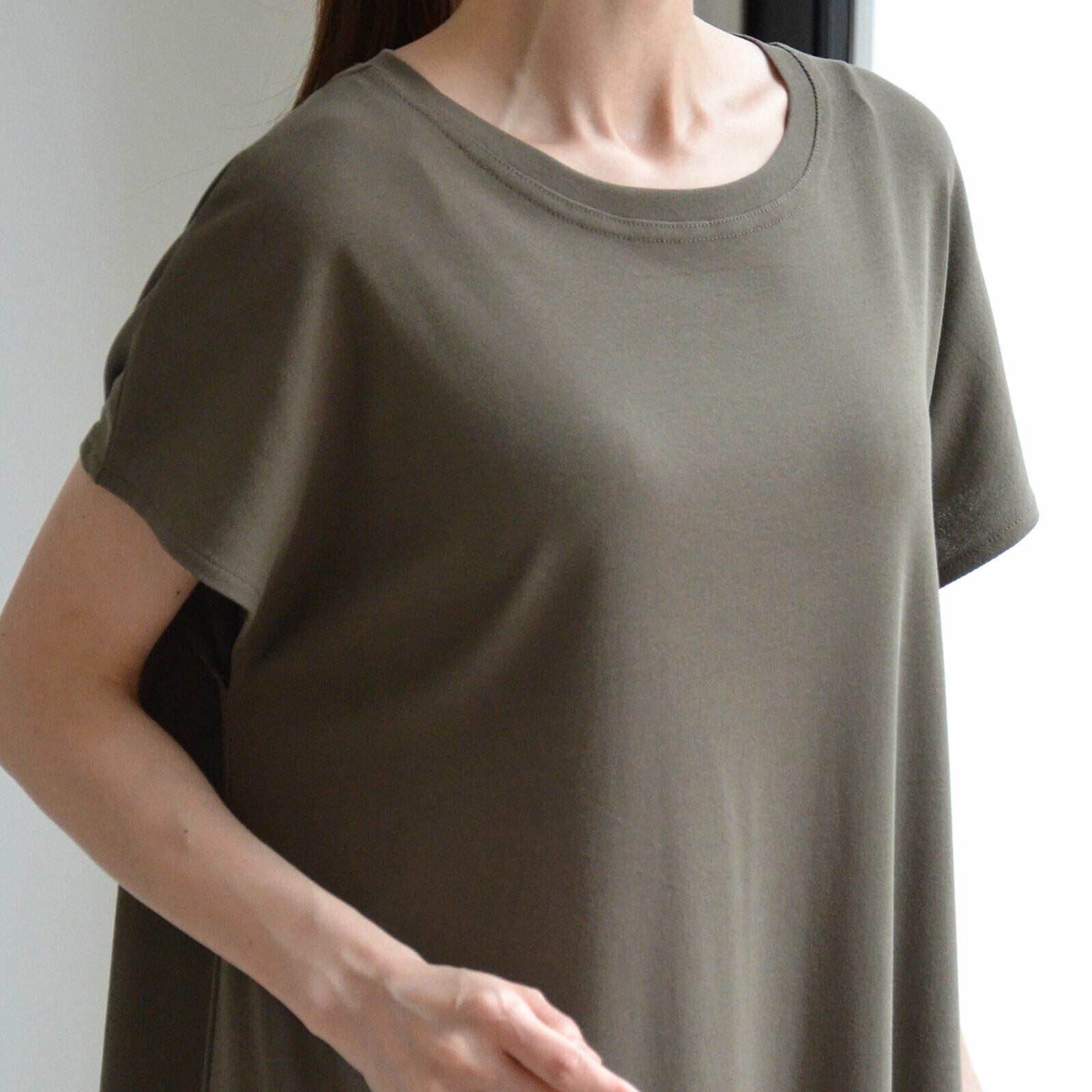 ワンピース 膝丈ワンピース 半袖ワンピース フレンチスリーブワンピース aラインワンピース レディース 春 夏 50代 40代 半袖 カーキ 綿100% 日本製 丸首