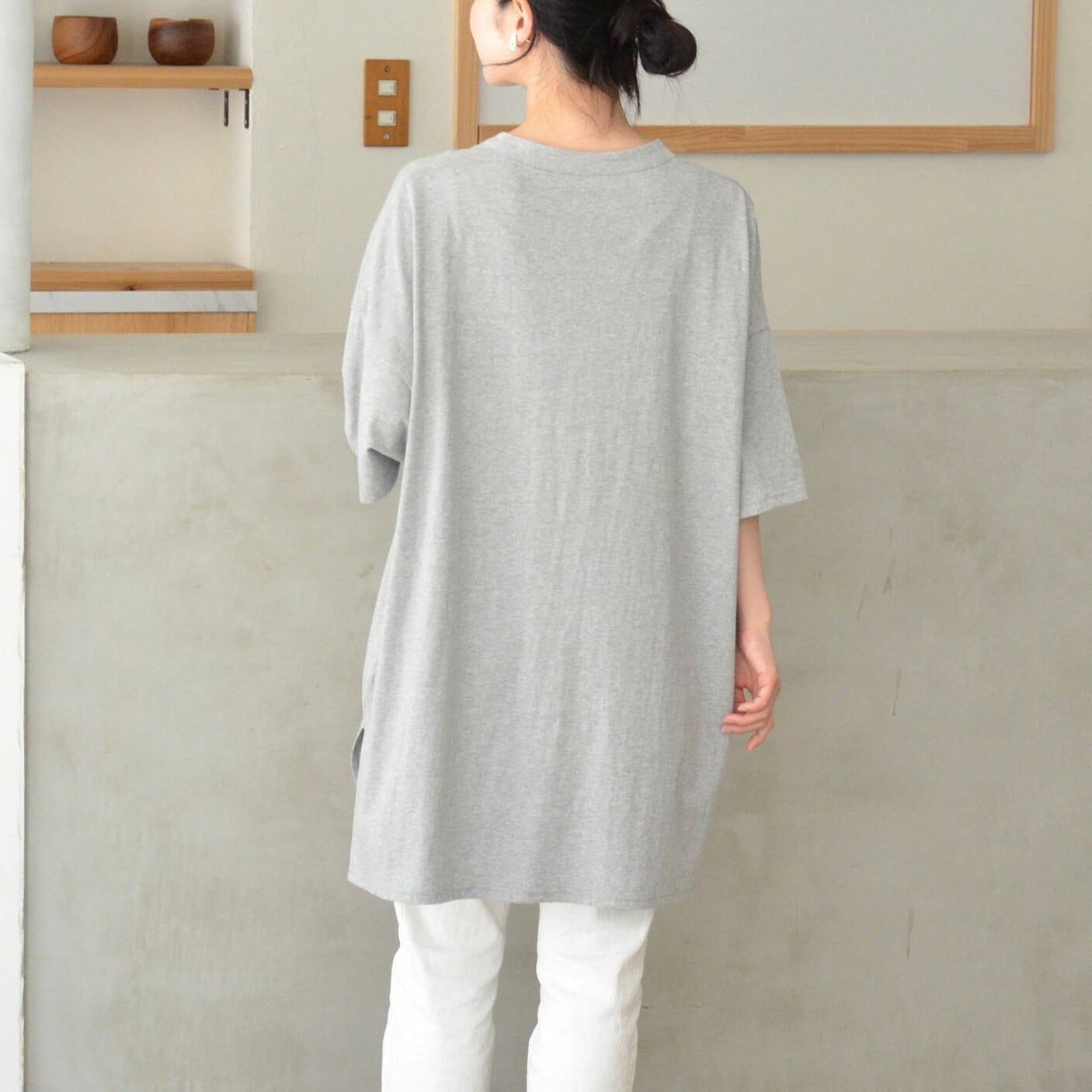 ヒップがすっぽり隠れるチュニック丈なので一枚で着用でき、様々なボトムとのコーディネートが楽しめます。