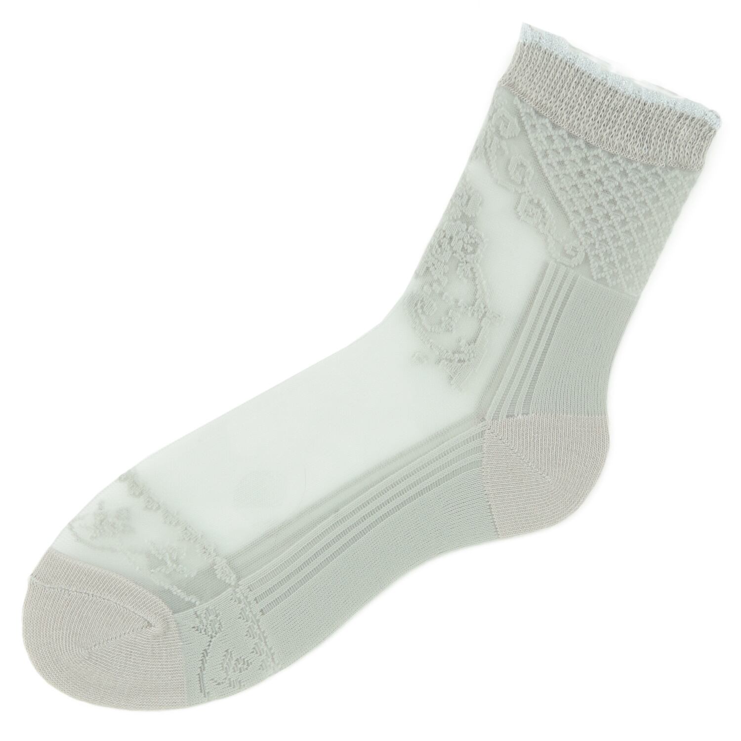 シースルーソックス グレー 幾何学柄 花柄 ソックス レディース 靴下 シースルー靴下 シースルー ハイゲージ シルク混 クルーソックス レース 日本製 メール便対応