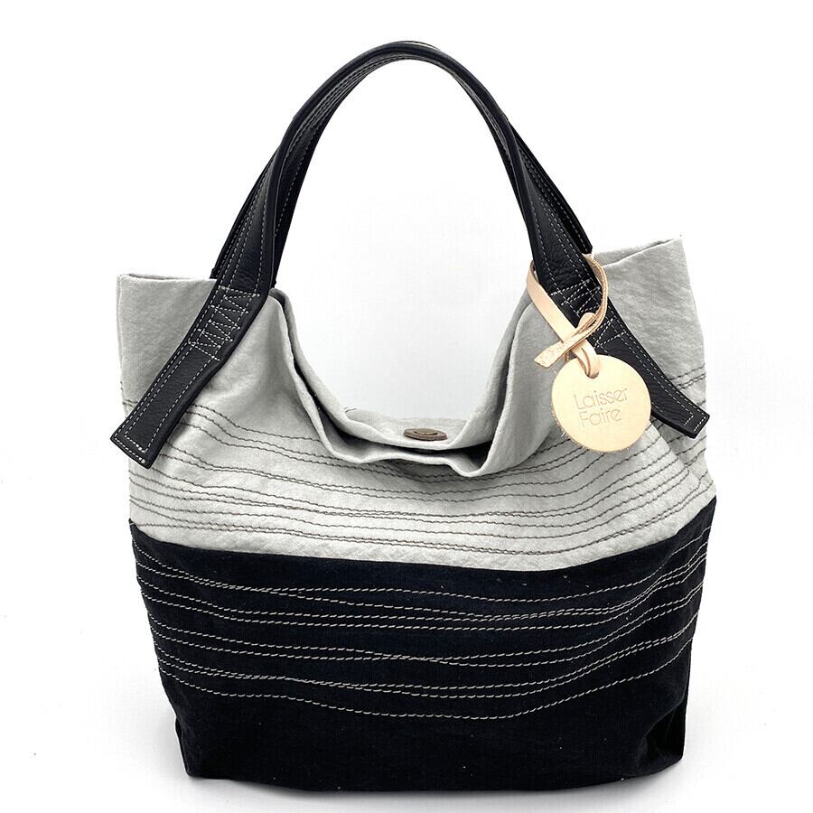 Laisser Faire トートバッグ 帆布 帆布トートバッグ レディース バッグ a4 大きめ 遠州織物 遠州木綿 遠州織物バッグ 牛革 トート グレー ブラック 黒 送料無料