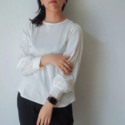 カットソー ブラウス レディース 長袖 白 ホワイト オフィス フォーマル 50代 40代 トップス tシャツ プルオーバー 丸首 無地 日本製 婦人 女性 メール便対応