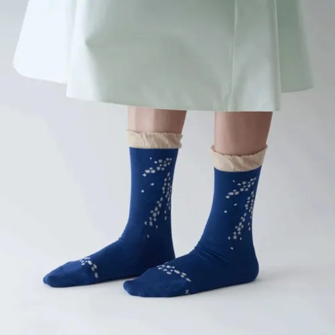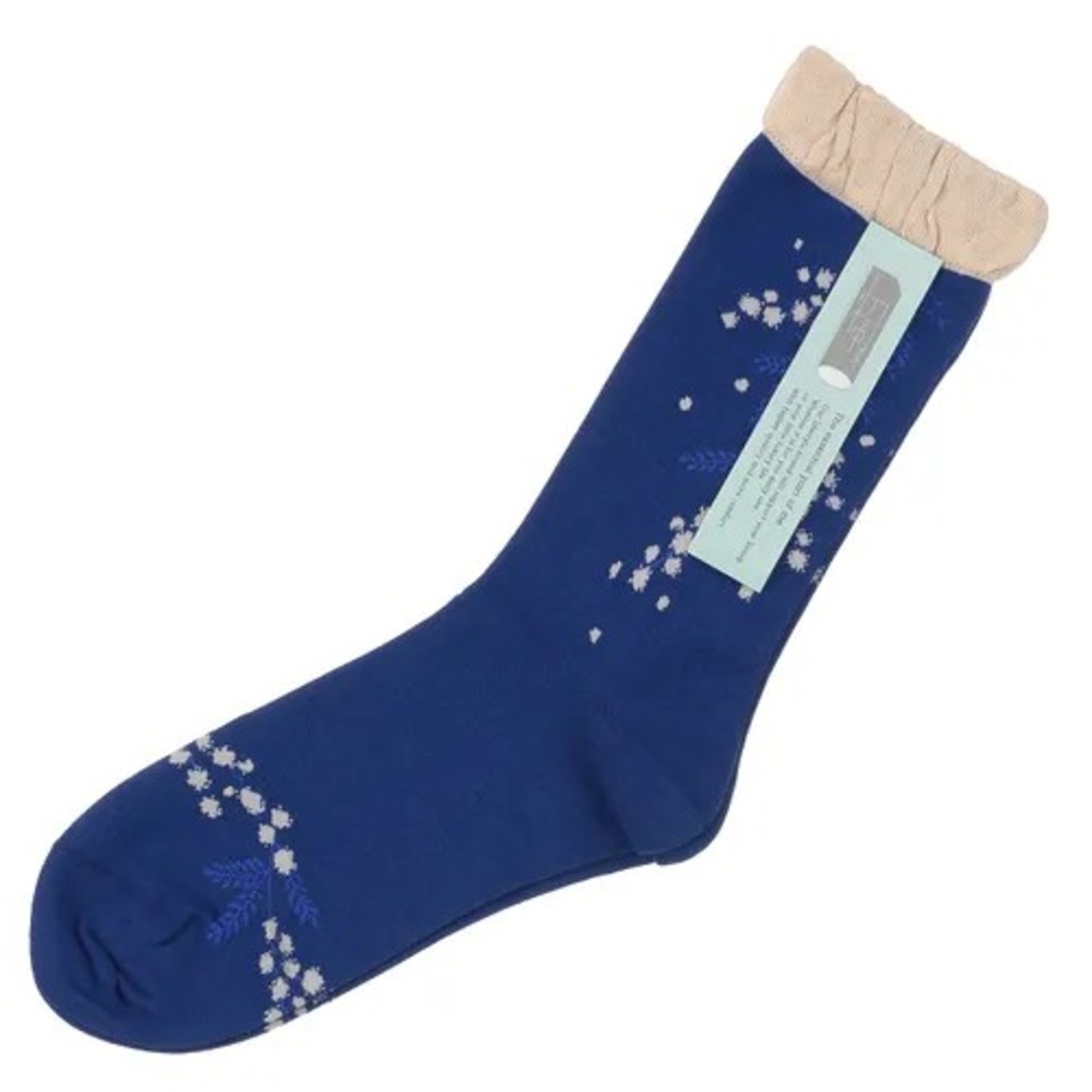 fromF ソックス 靴下 ネイビーブルー レディース クルーソックス 履き口ゆったり 口ゴムゆったり靴下 口ゴムなし ギフト プレゼント 女性 日本製 婦人 かすみ草