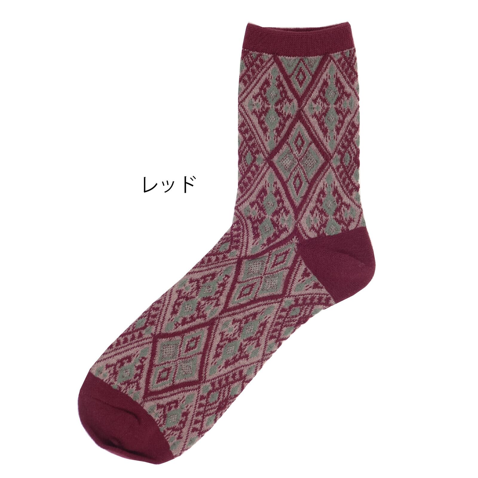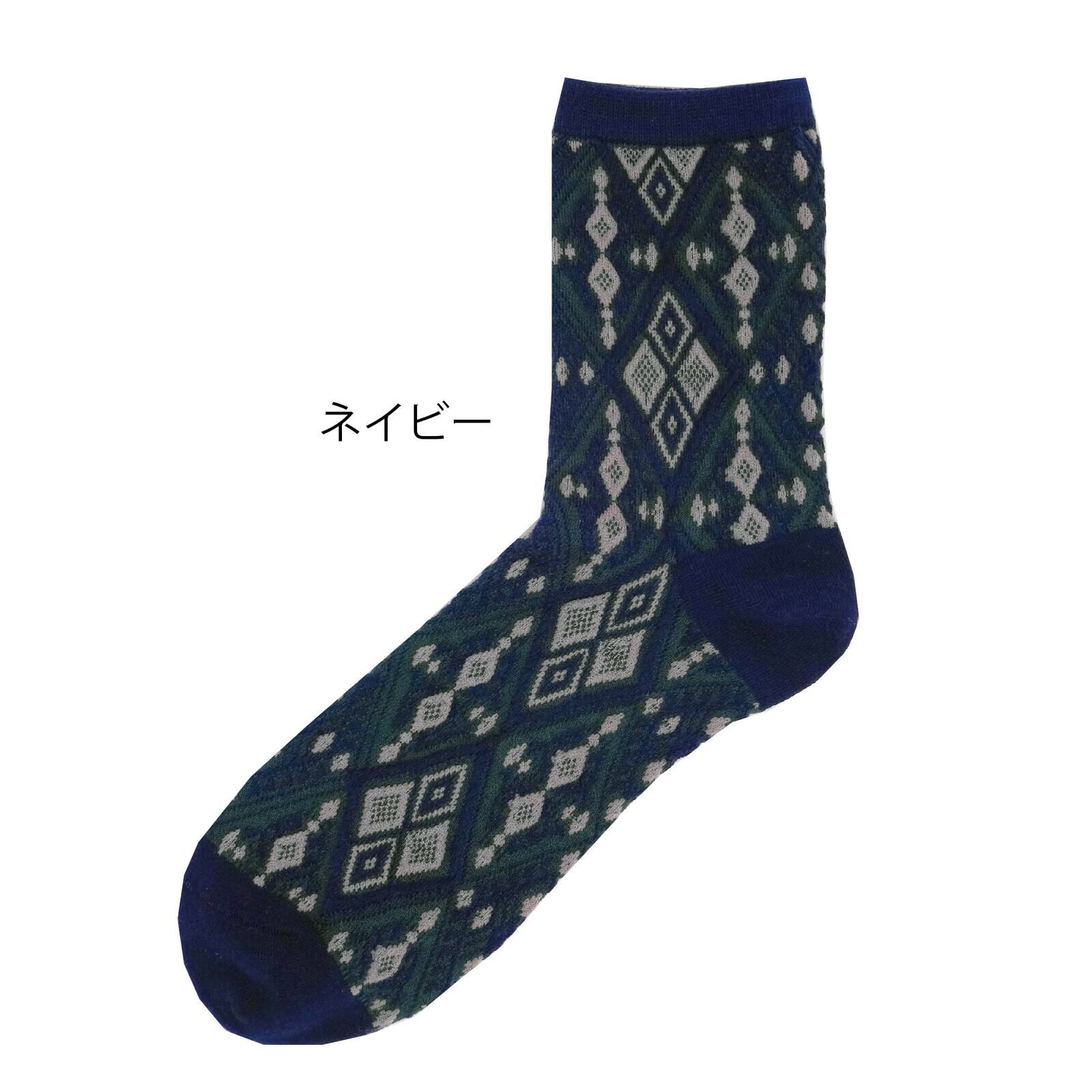 商品名:幾何学模様 レディース クルーソックス 秋冬 暖かい靴下 くつした