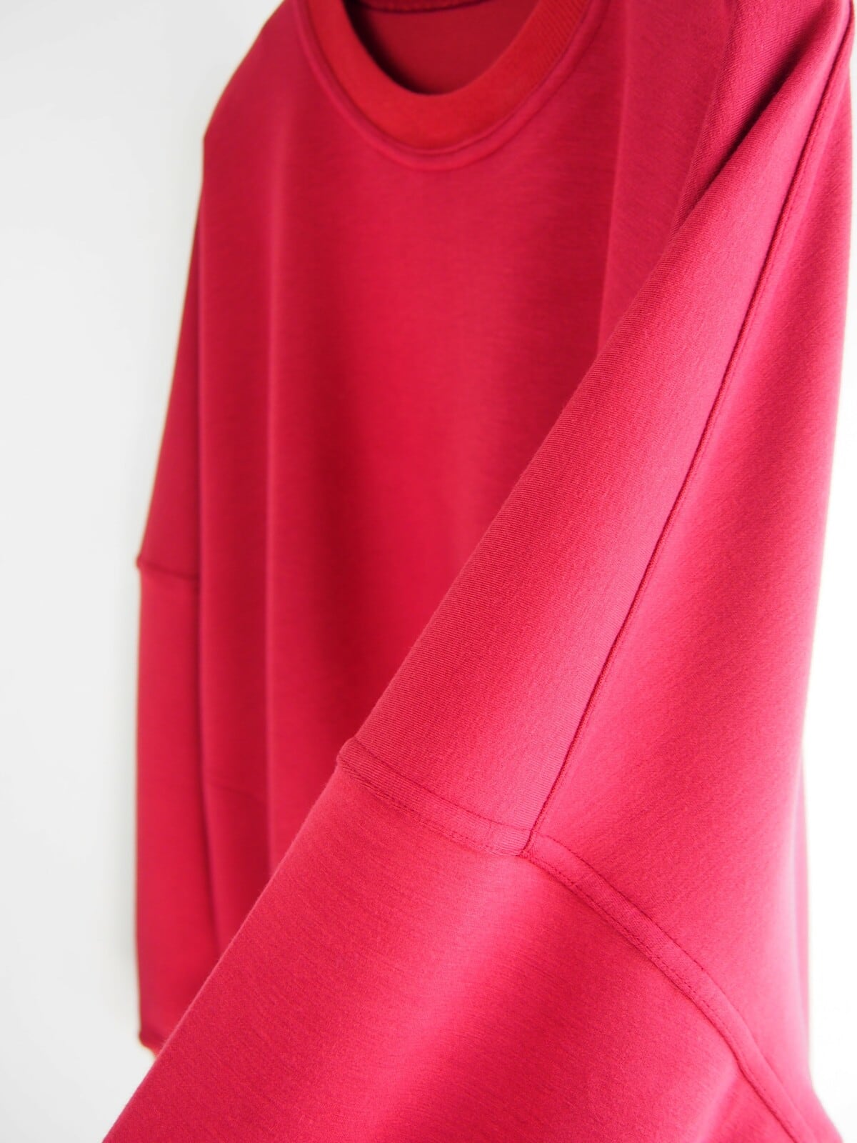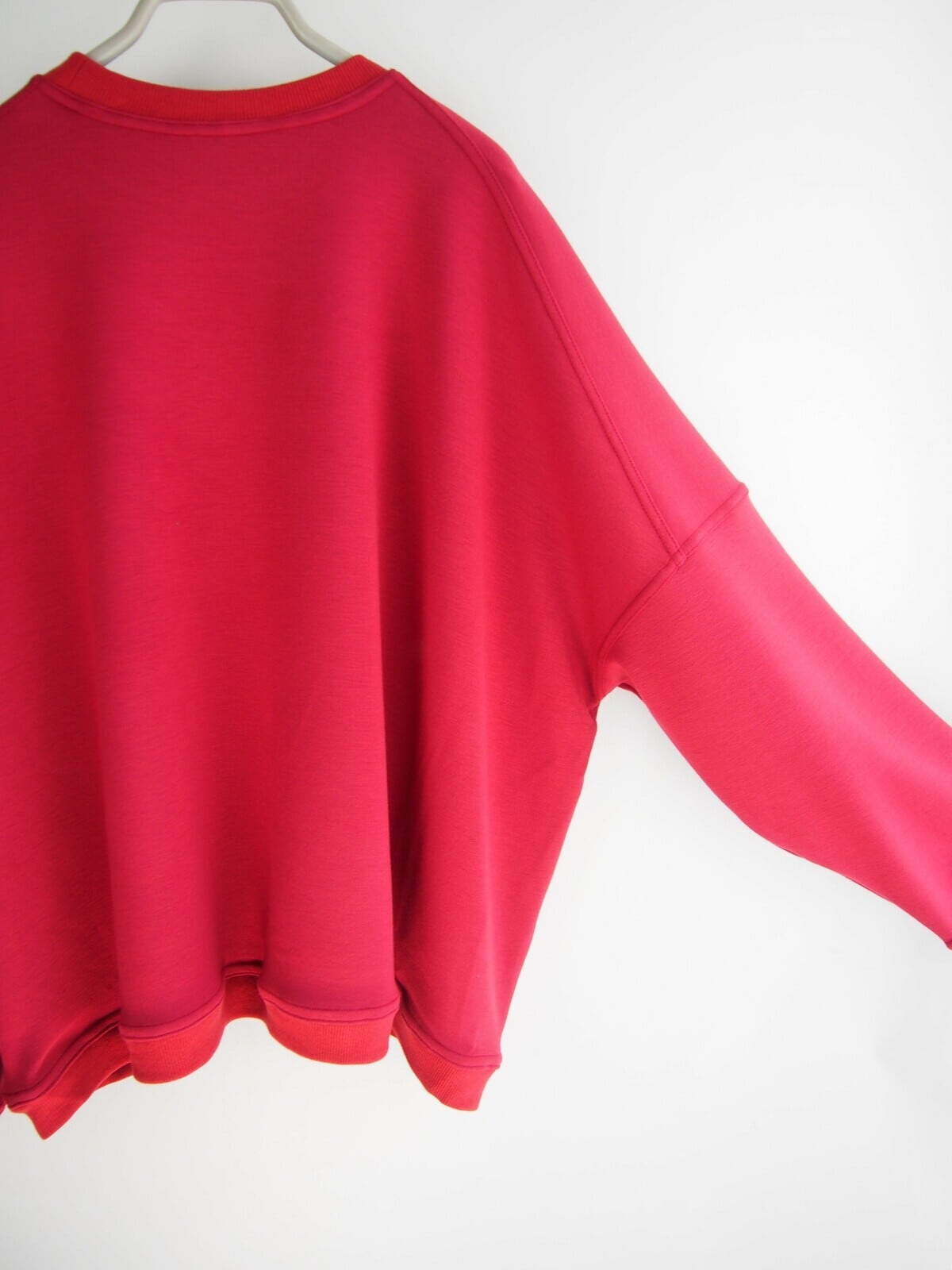 着丈よりも身幅サイズを大きくしたふんわり丸みを帯びるスペックで、コットンリブによるナチュラルな膨らみのコクーンラインが好評のオーバーサイズトップスです。