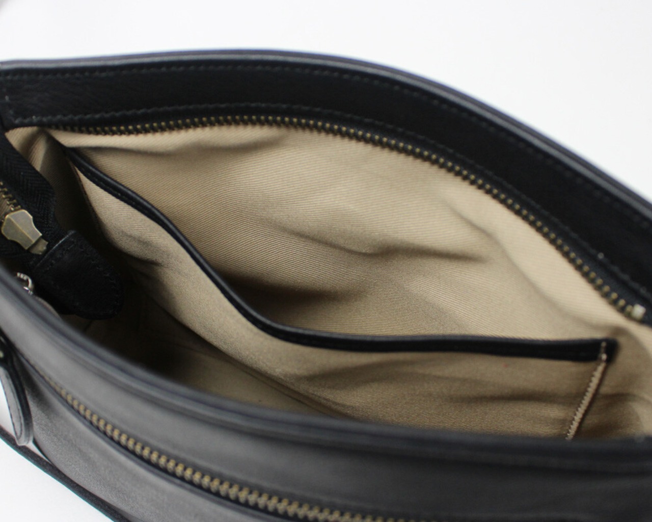 シュリンクレザーを使用した、ナチュラルな風合いのあるショルダーバッグ。